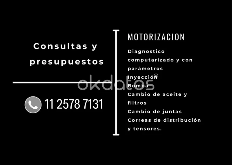 Hacemos mecanica de Diesel completa, y mantenimiento y cambios de filtro en general de nafta y diesel, tanto en el taller como a domicilio