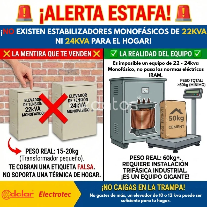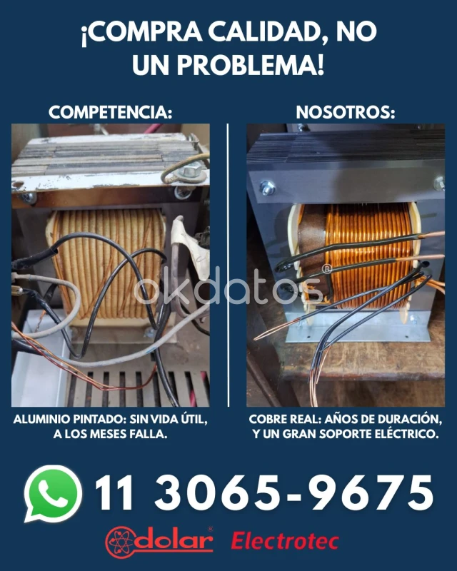 ¿Cansado de que la baja tensión en Castelar, Ituzaingó o Morón ponga en riesgo tu hogar? En Electrorec®, marca registrada DOLAR®, no vendemos promesas, vendemos ingeniería real. Nuestro Estabilizador de 20.000 Watts (80A) es el único que supera la "Prueba del Cobre". Mientras la competencia te ofrece equipos livianos con bobinado de aluminio que recalientan y desperdician energía, nosotros fabricamos con 100% COBRE ELECTROLÍTICO. El cobre garantiza una conductividad superior y una vida útil prolongada, reduciendo drásticamente el Efecto Joule (calor innecesario). Esto se traduce en un ahorro real en tu factura de luz y una protección total para tus equipos más caros. Con capacidad para soportar hasta 8 aires acondicionados en simultáneo, es la opción líder para residencias grandes, comercios en Merlo y talleres en San Antonio de Padua. SEGURIDAD Y NORMATIVA: Equipamos cada unidad con borneras ignífugas de alta densidad y térmicas de 80 Amperios reales a la vista. Cumplimos con estándares de Puesta a Tierra y protección contra picos de tensión, asegurando que tus placas electrónicas y motores nunca sufran el colapso de la red externa. No arriesgues tu patrimonio con imitaciones; elegí la robustez y el respaldo de Electrorec®. ENVÍO GRATIS Y ENTREGA INMEDIATA en Castelar, Ituzaingó, Morón, Merlo, Padua y todo el GBA. ¡PASALE POR ARRIBA A LA BAJA TENSIÓN CON EL PODER DEL COBRE REAL! ¿Cansado de que la baja tensión en Castelar, Ituzaingó o Morón ponga en riesgo tu hogar? En Electrorec®, marca registrada DOLAR®, no vendemos promesas, vendemos ingeniería real. Nuestro Estabilizador de 20.000 Watts (80A) es el único que supera la "Prueba del Cobre". Mientras la competencia te ofrece equipos livianos con bobinado de aluminio que recalientan y desperdician energía, nosotros fabricamos con 100% COBRE ELECTROLÍTICO. El cobre garantiza una conductividad superior y una vida útil prolongada, reduciendo drásticamente el Efecto Joule (calor innecesario). Esto se traduce en un ahorro real en tu factura de luz y una protección total para tus equipos más caros. Con capacidad para soportar hasta 8 aires acondicionados en simultáneo, es la opción líder para residencias grandes, comercios en Merlo y talleres en San Antonio de Padua. SEGURIDAD Y NORMATIVA: Equipamos cada unidad con borneras ignífugas de alta densidad y térmicas de 80 Amperios reales a la vista. Cumplimos con estándares de Puesta a Tierra y protección contra picos de tensión, asegurando que tus placas electrónicas y motores nunca sufran el colapso de la red externa. No arriesgues tu patrimonio con imitaciones; elegí la robustez y el respaldo de Electrorec®. ENVÍO GRATIS Y ENTREGA INMEDIATA en Castelar, Ituzaingó, Morón, Merlo, Padua y todo el GBA. ¡PASALE POR ARRIBA A LA BAJA TENSIÓN CON EL PODER DEL COBRE REAL!