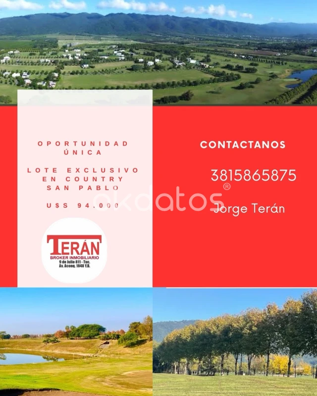 ¡VENTA DE LOTE EN COUNTRY SAN PABLO! LOTE MEDIDAS: 665mt2 PRECIO : $95.000 DOLARES CONTACTOS: 3813472460 - ZAMIRA 3815865875 - JORGE