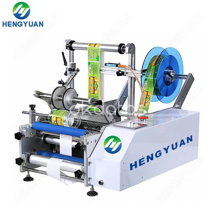 Máquina etiquetadora semiautomática de alta precisión para etiquetas adhesivas de botellas redondas