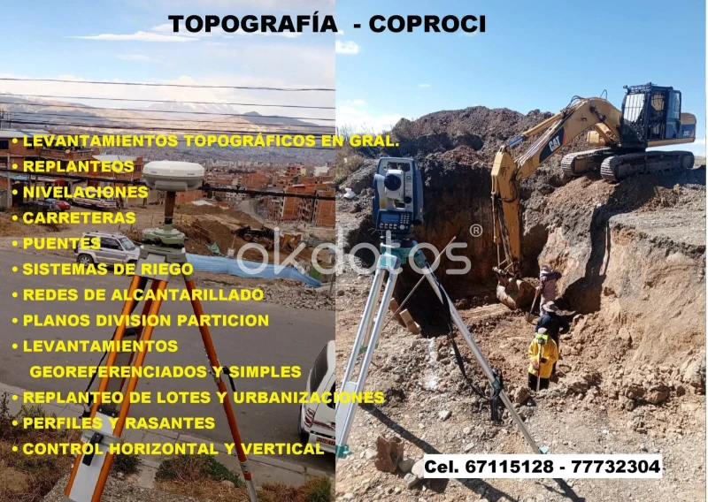 OFRECE SERVICIOS DE TOPOGRAFÍA -LEVANTAMIENTOS TOPOGRÁFICOS EN GENERAL -REPLANTEOS -NIVELACIONES -CARRETERAS -PUENTES -SISTEMAS DE RIEGO -REDES DE ALCANTARILLADO -PLANOS DIVISION PARTICION -LEVANTAMIENTOS GEOREFERENCIADOS Y SIMPLES -REPLANTEO DE LOTES Y URBANIZACIONES -PERFILES Y RASANTES -CONTROL HORIZONTAL Y VERTICAL