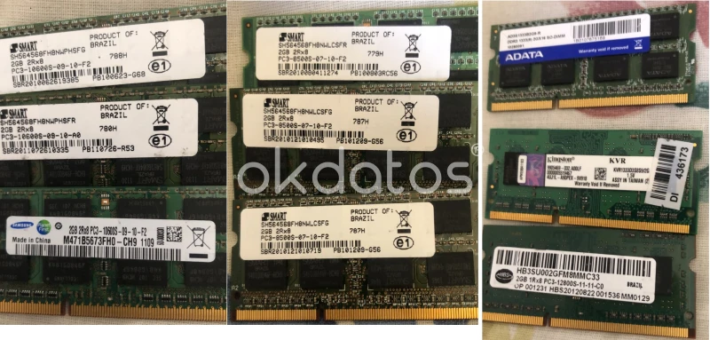 Memórias RAM DDR3 2GB usadas, em bom estado e testadas. - Ideal para upgrades simples - Valor: R$ 35,00/unidade - 14 unidades disponíveis