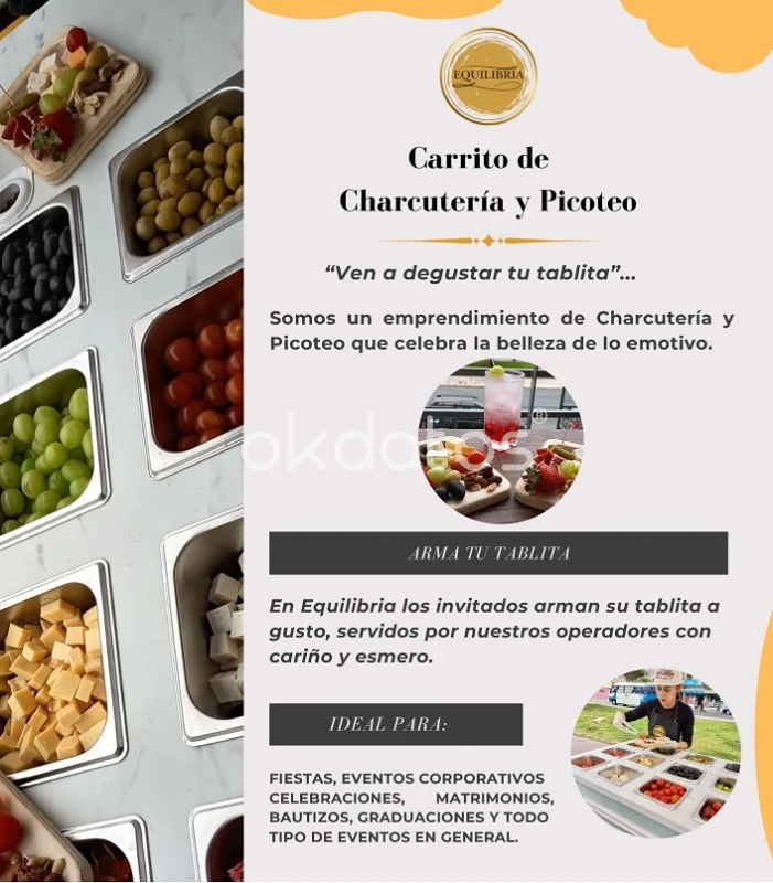 Servicio de Charcutería, Snack y Picoteo con ingredientes seleccionados, donde el invitado escoge lo que desea degustar, servido en una mini tablita a su medida. Nos especializamos en llevar elegancia, buena presentación y buen gusto a cada una de sus celebraciones donde podrá escoger una amplia variedad de productos con los cuales sorprender a sus invitados. Ideal para fiestas, eventos corporativos, manifestaciones, matrimonios, bautizos y todo tipo de eventos en general. Para más información contáctenos. +569 85869817