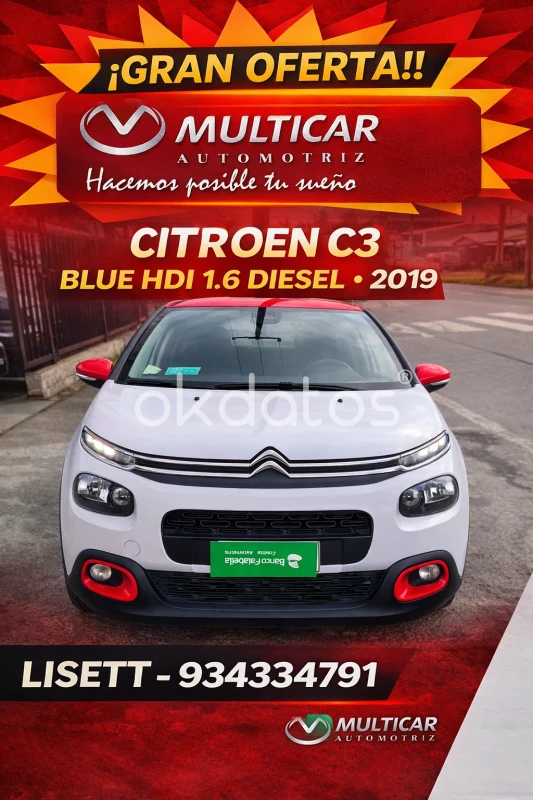 ✨ CITROËN C3 BLUE HDI ✨ 📅 Año 2019 ⚙️ Motor 1.6 Diesel – Súper económico 🚘 Características y accesorios: ✔️ Aire acondicionado ❄️ ✔️ Radio multimedia con pantalla 📱 ✔️ Dirección asistida ✔️ Excelente rendimiento de combustible ✔️ Interior cómodo y moderno ✔️ Vehículo en excelente estado 💳 OPCIONES DE PAGO Y FINANCIAMIENTO: ✅ Aceptamos todo medio de pago ✅ Financiamiento solo con tu cédula de identidad ✅ Pie flexible según evaluación ✅ Aprobación rápida ✅ Cuotas cómodas y plazos a tu medida 🔁 Recibimos tu vehículo en parte de pago ⚡ Tasación inmediata 📍 Visítanos en: Av. Santa Inés #595, Puerto Montt 📲 Contacto directo: Lisett Multicar ☎️ +56 9 3433 4791 🔥 No pierdas esta oportunidad Cotiza hoy y llévate un vehículo económico y confiable 🚘✨