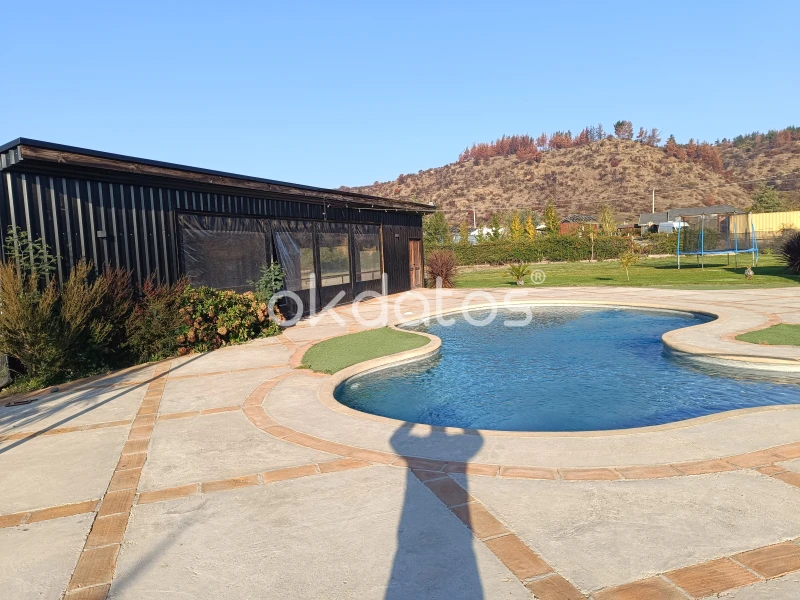 Muy buena casa emplazada en un terreno de 5.000 m2, ubicado en el Loteo Don Humberto, en la Comuna de Maule, distante a 8 Km. De Talca. Este loteo tiene un acceso controlado. Este sector presenta un rápido crecimiento y constante desarrollo de muy buen nivel, con una alta plusvalía, con excelente conectividad. La propiedad tiene una gran casa solida de 260 m2., construida con un estilo mixto de modernidad y campestre, con excelente sistema de aislación térmica, 4 dormitorios, 2 baños, cocina con concepto abierto, sala estar, calefacción con equipos de aire acondicionados, ventanales termopaneles con vidrios de alto impacto. Gran Piscina con amplias terrazas, jardines con riego automático, gran quincho con baños. El predio cuenta además con dos Bodegas y un Container para bodega. Gran espacio para estacionamiento de Vehículos. Y estacionamiento techado para 5 vehículos. Posee pozo profundo de 45 mts. Con excelente napa de agua. Dos empalmes eléctricos. Todo el perímetro muy bien delimitado. Además, posee casa de invitados de 60 m2. Con baño y dos equipos de aire acondicionados, con sala estar y cocina americana.