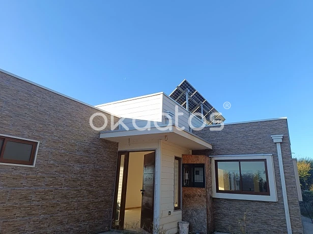 Se vende casa nueva, en Loteo Alto Caupolican, tiene 140 m2 construidos, en un terreno de 5.000 m2. Casa estilo mediterráneo nueva, sin uso, tiene 3 dormitorios, 2 baños, gran cocina, equipada con energía solar con paneles fotovoltaicos, con excelente sistema de aislación térmica, autosustentable, equipada con todas las cortinas de calidad, terraza, equipada con estanques de agua potable. Terreno con un tranque revestido con membrana geotextil impermeable. Todo el terreno se encuentra delimitado con sus cierros. Gran cantidad de árboles, linda vista hacia el valle. Excelente ubicación, orientación muy soleada. Loteo con accesos controlados, con cámaras de vigilancia; a solo 6,5 kms. De Talca hacia Pencahue.
