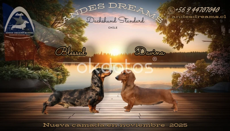 Dachshund (salchicha) inscritos en KENNEL club. Machos y hembras, colores rojo, negro-fuego y arlequín. Garantías de raza, salud y carácter Somos Andes Dreams, criadero registrado y supervisado por Kennel Club de Chile. Tenemos página Web con información detallada, fotos y videos de los cachorros. +56951680247