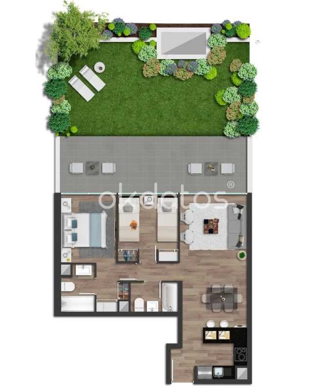 Departamento de 2D2B , patio privado, con estacionamiento y bodega
