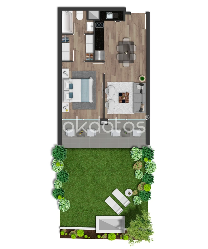 Departamento de 1D1B CON PATIO, ESTACIONAMIENTO Y BODEGA