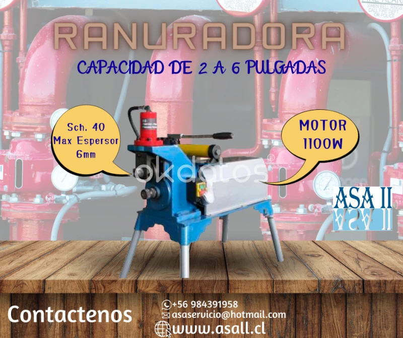 ASA II Ventas ofrece ranuradoras para tuberías con distintos modelos y medidas, diseñadas para realizar ranurados precisos y eficientes en obra. Los equipos son robustos y facilitan el trabajo, y cuentan con servicio técnico, repuestos, accesorios y facilidades de pago, con atención desde su local en Pudahuel, Santiago.