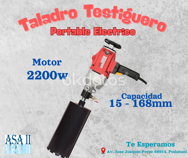 Testiguera de Hormigón ASA II Potente, precisa y lista para trabajo pesado. Perfora de 15 a 250 mm 650 r/min de alto rendimiento Estructura robusta y duradera Brocas disponibles Ideal para construcción y uso profesional. Ubicación: Pudahuel, Santiago Contáctanos por interno o WhatsApp +56 984391958 y cotiza hoy. Venta@asall.cl