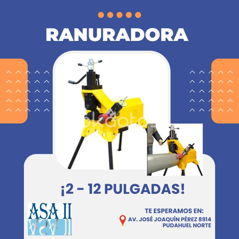 Ranuradoras para Tuberías ASA II Precisión y rapidez para tus trabajos en obra. Equipos para distintos diámetros y espesores Ranurados uniformes y profesionales Alta eficiencia en trabajo pesado Contamos con Servicio técnico, repuestos y accesorios. Soluciones confiables para uso industrial. Ubicación: Pudahuel, Santiago Contáctanos por interno o WhatsApp +56 984391958 y cotiza hoy. Venta@asall.cl