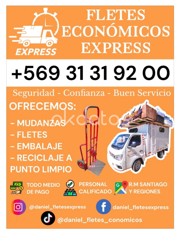 FLETES ECONÓMICOS EXPRESS SE REALIZAN FLETES, MUDANZAS, TRASLADOS, EMBALAJE Y RETIROS DE MUEBLES EN GENERAL ASIA PUNTOS LIMPIOS, COTIZA Y AGENDE SU FECHA Y HORA AL WHATSAPP +569 31 31 92 00 SEGURIDAD , CONFIANZA Y BUEN SERVICIO 🚛💯👍R.M DE SANTIAGO - FUERA DE SANTIAGO.
