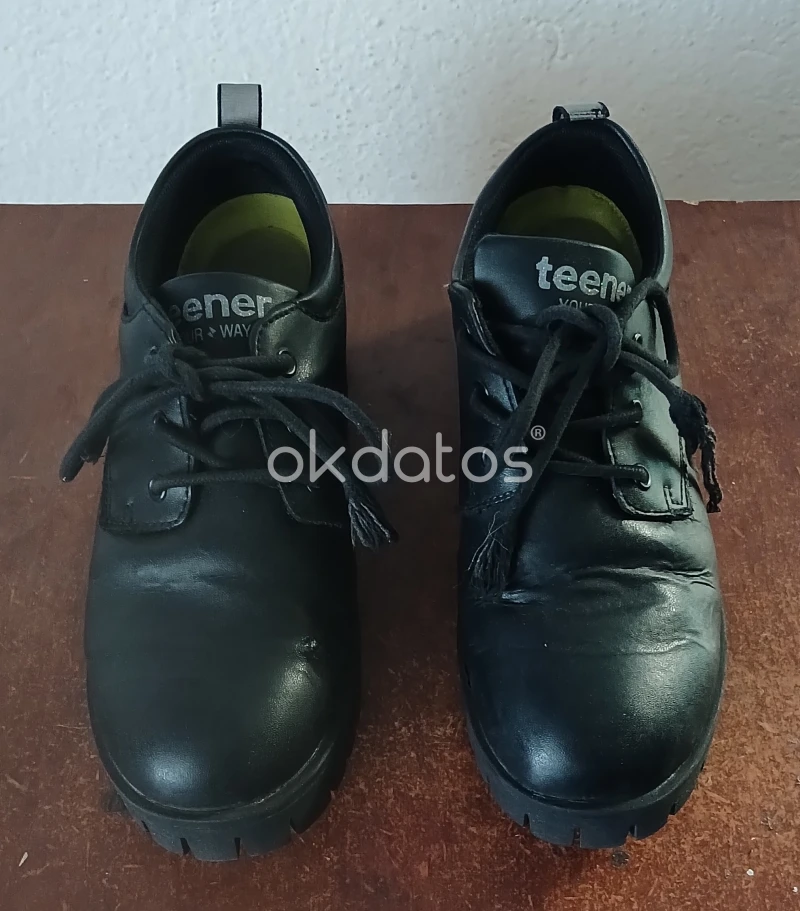 Zapato Escolar con plantilla Eco-Friendly que brindanda un mejor calce, amortiguación y respirabilidad. Ofrecen durabilidad y moda en cada paso. Con detalles modernos y materiales de alta calidad. Usados solo 1 mes! Modelo: Chumy Numero: 37 Color: Negro Material : Cuero Material suela: Tpr Tecnología: Life Natural / Antibacterial