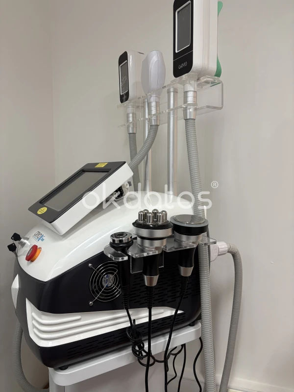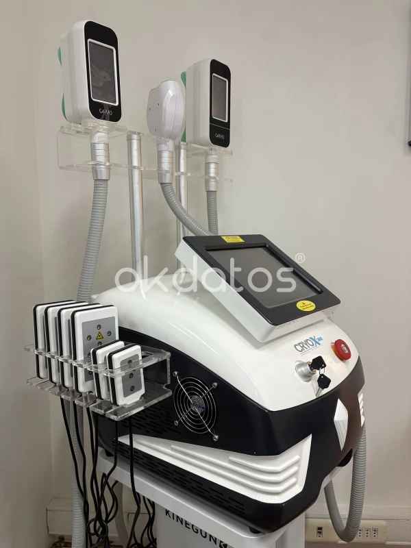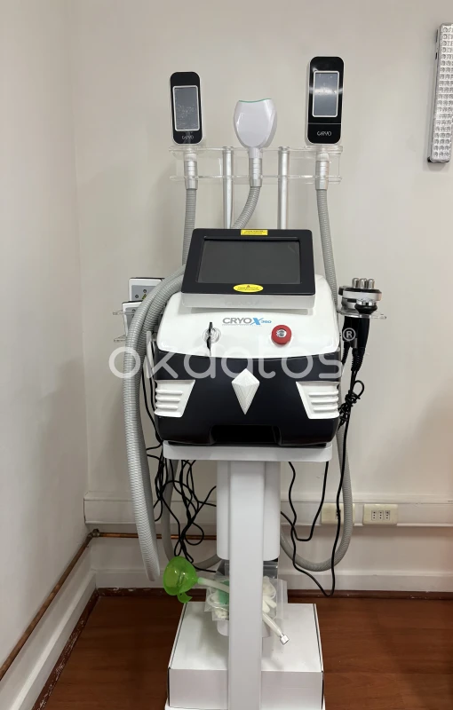 Adelgazamiento corporal con tecnología CRYO Reduce efectivamente la grasa disminuyendo la temperatura entre -10ºC y 10ºC. Cuenta con tecnología de radiofrecuencia de 5MHz (corporal y facial) + Cavitación 40Khz + Lipo láser. El equipo viene con todos sus cabezales y accesorios. En perfecto estado, muy poco uso