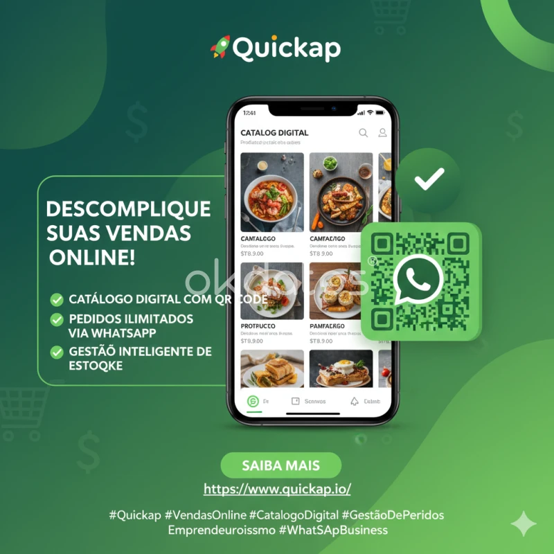 PARE DE ATENDER NO MANUAL! 🛑 Sou especialista e liberei uma CONDIÇÃO EXCLUSIVA na Quickap para você automatizar seu negócio hoje. O cliente faz o pedido sozinho e você recebe tudo pronto no WhatsApp. ✅ Catálogo Digital Profissional ✅ Pedido pronto e somado no Whats ✅ Cálculo de Frete Automático ✅ Sem taxas por cada pedido Aproveite esta oportunidade pelo link oficial: 🔗 CLIQUE AQUI: http://bit.ly/sms_quickap 🎫 Cupom: NOVO2025 Saia do amadorismo e automatize seu lucro! 🚀