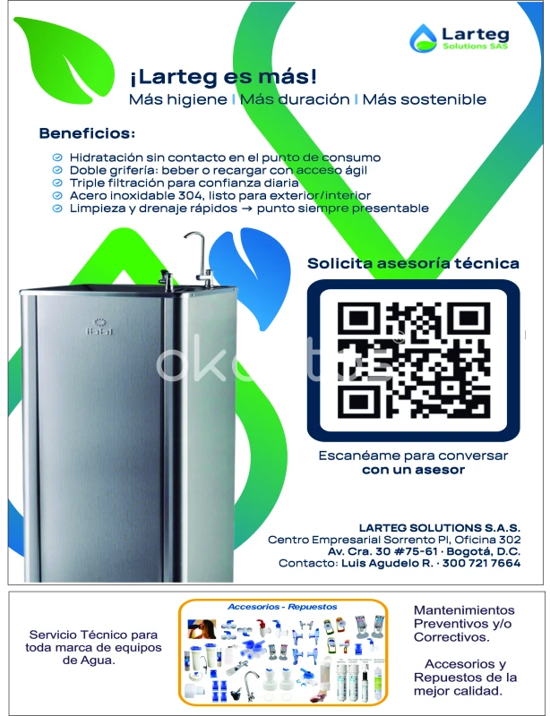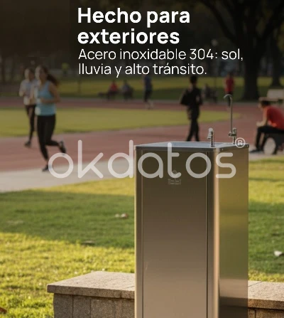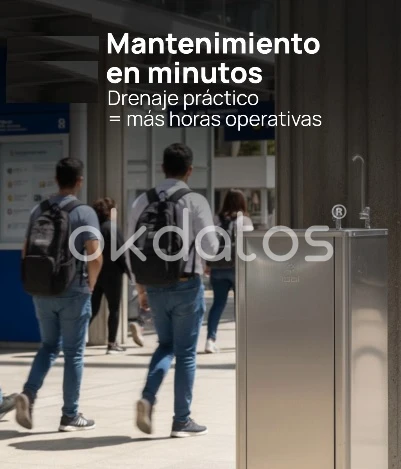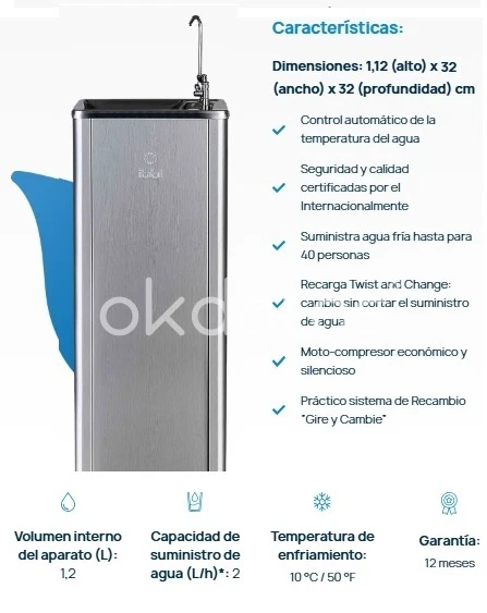 Modelo tradicional de pedestal en acero inoxidable, permite la fácil adaptación en ambientes donde hay gran circulación de personas. Posee dos grifos de presión en latón cromado, uno de chorro y otro para vaso. Los bebedores BAG 40 tienen capacidad de refrigerar 6,0 litros/hora. Características: • Control automático de la temperatura del agua • Seguridad y calidad certificadas por el Internacionalmente • Suministra agua fría hasta para 40 personas • Grifo (vaso y chorro) en latón cromado, con ajuste de chorro de agua • Moto-compresor económico y silencioso • Práctico sistema de Recambio «Gire y Cambie» Información Técnica: • Medidas: (ancho x alto x profundidad) 320 x 1120 x 320 mm • Certificación Internacional • Gas R-134a: inofensivo a la capa de ozono • Depósito de agua en acero inoxidable (Grado alimenticio) aislado con EPS, con serpentín externa facilita la higienización, no altera las propiedades del agua y posee drenaje para la limpieza • Tapón en acero inoxidable pulido, con relieves para evitar salpicaduras • Rejilla sifón: elimina olores indeseables provenientes de la red de alcantarillado • Gabinete en acero inoxidable • Filtro interno – Filtro de agua con carbón activado impregnado con plata: impide la proliferación de microorganismos, reduce cloro, elimina sabores y olores indeseables • Permite la utilización de filtro externo (opcional) • Uso interno y externo CEL. 300 7 21 76 64