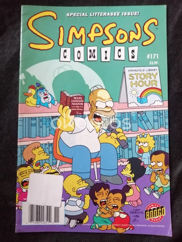 El pack consta de 10 revistas usadas de los Simpsons y Bart, el estado de cada revista es el que se muestra en las fotos. El numero de las ediciones son: Simpsons Comic #158 Simpsons Comic #167 Simpsons Comics #170 Simpsons Comics #171 Simpsons Comic #177 Simpsons Comics #178 Simpsons Comic #186 Bart Simpson #69 Bart Simpson #67 Bart Simpson #59