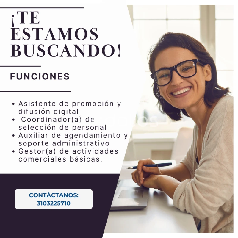 📢 ¡Únete a nuestro equipo! Estamos en proceso de selección para personas proactivas, con ganas de aprender y avanzar. 💼 No se requiere experiencia previa- Medio tiempo 📈 Tu crecimiento depende de tus resultados: ¡puedes ascender y aumentar tus ingresos! ⚡Tus funciones⚡ Asistente de promoción y difusión digital 🟢 Coordinador(a) de selección de personal 🟢 Auxiliar de agendamiento y soporte administrativo 🟢Gestor(a) de actividades comerciales básicas. 📍 Ubicación: Bogotá/ modalidad remota parcial 💰ingresos aproximados: $ 700.000-$ 1.050.000 mensuales 📚 Capacitación incluida 🚀 posibilidad de ascenso🤝🏻 Contrato directo con al compañía. 📩 Envía tu hoja de vida a: yudi.santa.tlimg@gmail.com 📱 WhatsApp: 3103225710 ¡Contáctanos ya!
