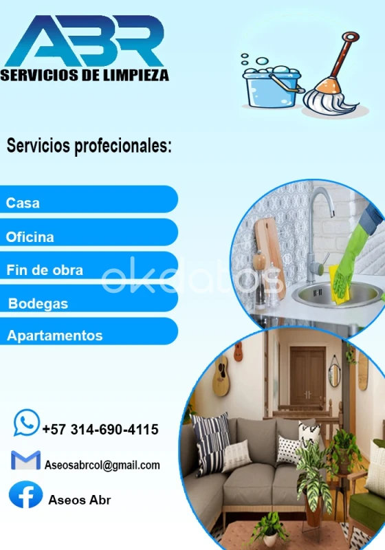 Servicio profesional en el área de aseo y limpieza Limpiamos tu casa, oficina, bodega, apartamento, fin de obra.