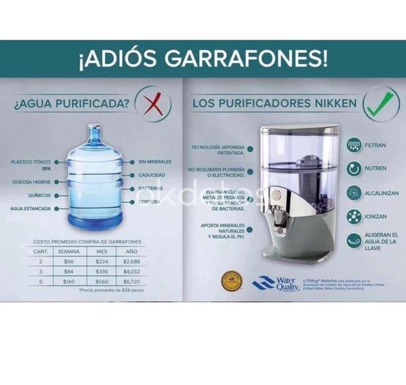 Libre de sedimentos, químicos, olores y sabores, sin materiales tóxicos, agua Nutritiva y Energizante, acción antioxidante, ph mejorado.