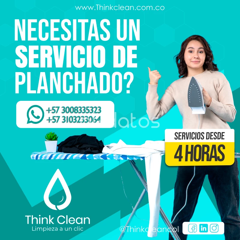 Think Clean ofrece servicio de aseo a domicilio y limpieza profesional en Bogotá. Contamos con personal de limpieza capacitado, confiable y puntual, ideal para hogares, oficinas y espacios empresariales. Atendemos en todos los sectores de Bogotá, especialmente zonas de estrato 4, 5 y 6. Ofrecemos aseo por horas, por días o programado según tus necesidades. Realizamos limpieza profunda, mantenimiento, aseo post obra, aseo por mudanza y desinfección. Nuestro personal está entrenado y cuenta con experiencia en limpieza residencial y empresarial. Puedes solicitar el servicio con o sin implementos incluidos. Si estás buscando servicio de aseo confiable, limpieza a domicilio en Bogotá, aseo por horas en el norte o sur de la ciudad, personal de limpieza por días, o una empresa de aseo profesional, Think Clean es tu mejor opción. Nuestra prioridad es ofrecer limpieza de alta calidad con atención inmediata y horarios flexibles. Contrata con nosotros si necesitas: servicio de aseo urgente, aseo a domicilio estrato 5, limpieza por horas en Bogotá, empresa de aseo confiable o personal de aseo con experiencia. Resolvemos tus necesidades de limpieza de forma rápida, eficiente y segura. Contáctanos por WhatsApp al +57 310 323 3064 y agenda tu servicio hoy mismo. Think Clean, limpieza profesional que se adapta a ti.