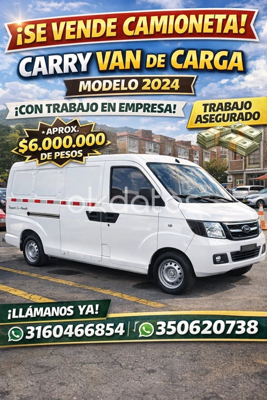 oportunidad se vende camioneta Carry Van de carga, modelo 2024, muy buenas condiciones con trabajo pagan hasta seis millones mensuales