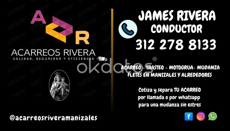 ACARREO - TRASTEO - MOTOGRUA- FLETES - ENVIOS - TRASNPORTE - MUDANZA MANIZALES Y ALREDEDORES LLAMA YA ACARREOS MANIZALES 312 278 8133 馃摬 Cotiza al Ws p 312 278 8133 馃摬 QR whatsapp CONDUCTOR: JAMES RIVERA @acarreosriveramanizales