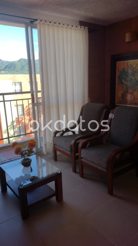 Apto. 68 m2, quinto piso, amoblado, sala, balcón, comedor, cocina, lavado, 3 alcobas, 2 closets, 2 baños, 1 parqueadero. Conjunto cerrado, 2 piscinas, cancha múltiple, gimnasio, parque infantil, salón comunal, sendero ecológico, parqueaderos visitantes.