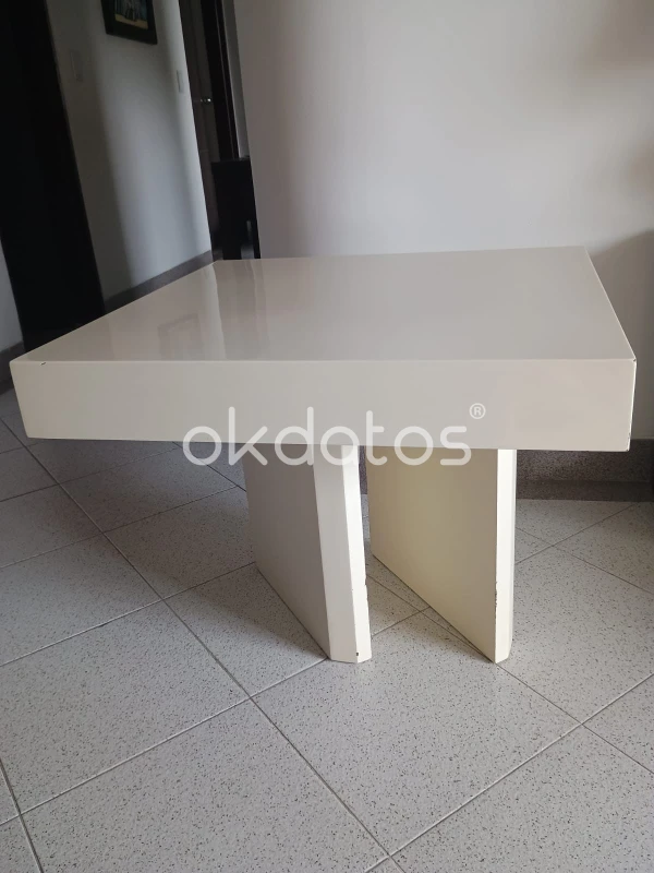 • Estilo: Moderno y minimalista. • Color: Blanco. • Acabado: Alto brillo (lacado o similar). • Forma: Cuadrada o rectangular. • Funcionalidad: Puede usarse como mesa de centro en una sala de estar o como mesa auxiliar, ideal para colocar objetos decorativos o bebidas.