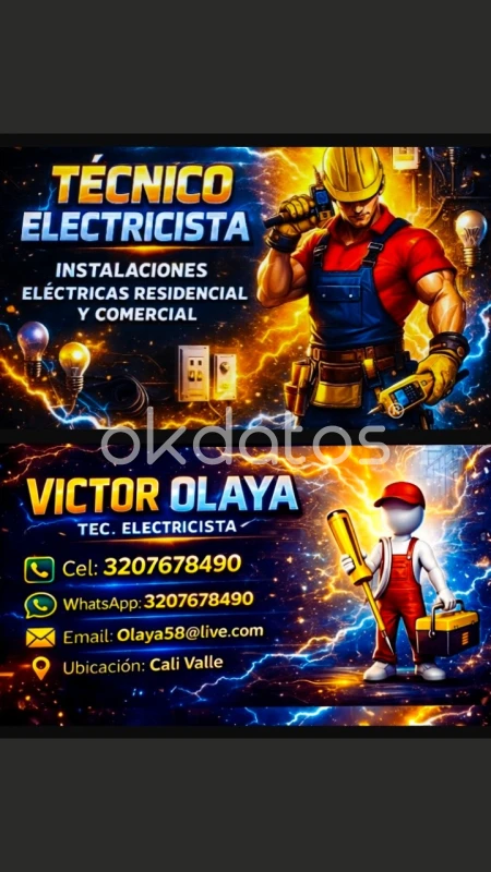 ⚡ Electricista en Cali disponible ⚡ ¿Sin luz, cortos o fallas? Yo te lo soluciono rápido y seguro 🔥 ✔ Instalaciones eléctricas ✔ Reparaciones urgentes ✔ Puntos 110V y 220V ✔ Duchas eléctricas ✔ Revisión de consumo (ahorra energía 💡) 💯 Trabajo garantizado, limpio y responsable 📍 Atención inmediata en Cali 📲 Escríbeme ahora y te doy solución