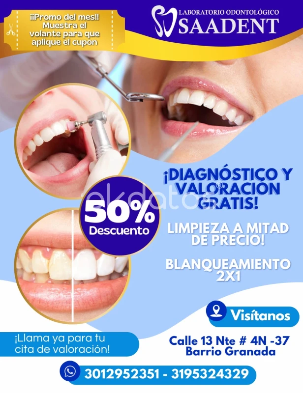Odontología en Cali – Mejora tu sonrisa hoy. Atención personalizada y de confianza. Te ayudamos a cuidar tu salud oral y mejorar tu sonrisa con tratamientos seguros y estéticos. ✨ Servicios: • Limpieza dental • Aclaramiento dental • Resinas estéticas • Coronas y carillas • Prótesis dentales 📍 Atención en Cali 📲 Agenda tu cita por WhatsApp ¡Tu sonrisa está en buenas manos!