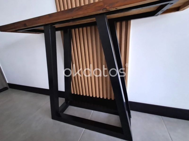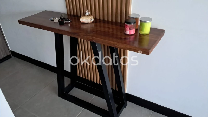 Vendo esta hermosa mesa consola estilo industrial, perfecta para recibidores, pasillos o como mesa auxiliar decorativa. (Sin rayones ni desgaste) Madera solida tipo cedro con estructura metalica negra y con diseño moderno en V. Medidas: 119 cm de largo, 31 cm de ancho y 85 cm de alto.