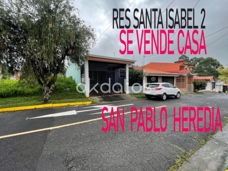 VENTA DE CASA EN SANTA ISABEL 2, SAN PABLO Heredia Lote 159.27 m2, construcción 130m2 ¢ 95.000.000 USO DE SUELO RESIDENCIAL Una edificación firmemente construida en concreto. Construcción alta para hacerla más fresca. 3 habitación, 2 baños, cochera para dos carros, patio y tendedero. Cocina grande y zona área social muy amena. Portón eléctrico, electricidad totalmente entubada. Piso cerámico. Ventilada, muy clara. Cerca de escuela, centros comerciales. Casa esquinera. Barrio muy tranquilo y selecto, seguro y servicios de bus constante. Zona de Alta plusvalía. INFORMACION: Roberto Jiménez Zumbado WhatsApp 8386 6164 – 2261 1595 Giselle Fernández WhatsApp 5004 9400