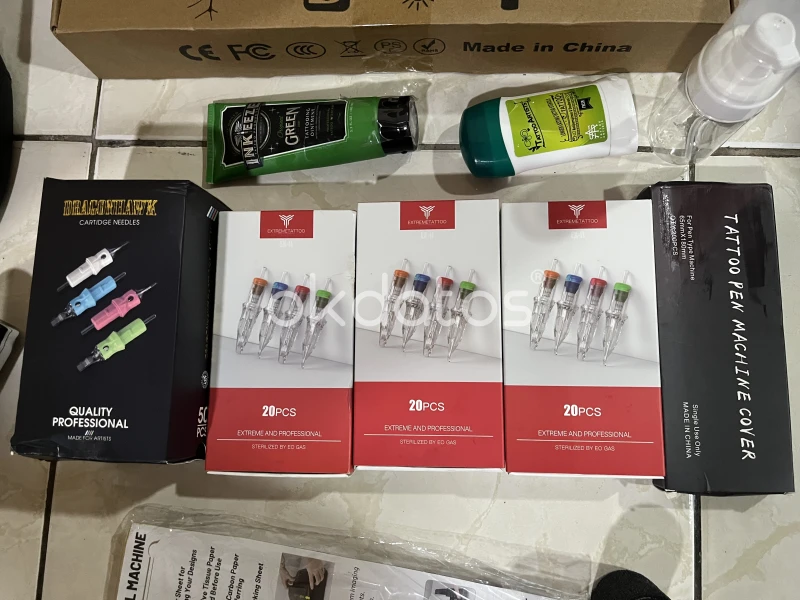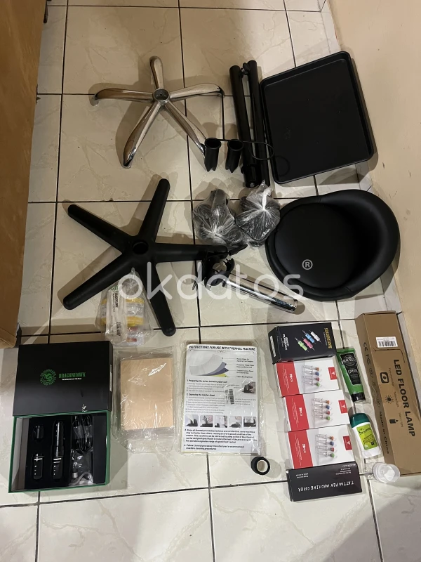 Máquina de tatuar DRAGONHAWK CON 2 baterías y fuente de poder. Cobertores 4 cajas de agujas de diferentes medidas Silla con rodines Mesa con rodines Lámpara Piel sintética Papel de transferencia Stencil Gel Cel 89694029