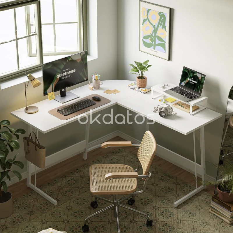✨ Escritorio en L Blanco –✨ Transforma tu espacio con este elegante escritorio en forma de L, perfecto para gaming 🎮, oficina en casa 💻 o estudio 📚. 📏 Medidas: 47.24” ancho x 17.72” profundidad x 28.62” alto 🤍 Color blanco moderno 🖥 Soporte de monitor ajustable (móvil) 🦵 Amplio espacio para las piernas 💪 Estructura resistente y estable Material : Madera de ingeniería