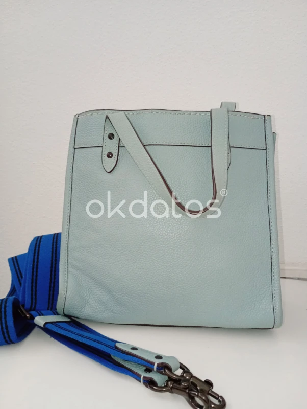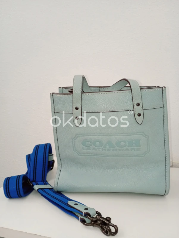 ✨ Bolso 👝 COACH original – SEMINUEVA ✨ Color: Celeste claro Incluye: correa ajustable ancha en tonos azul rey Vendo esta hermosa cartera COACH en excelente estado, semi nueva, usada muy pocas veces y bien cuidada. Es un modelo moderno y elegante, ideal para uso diario o para complementar cualquier outfit. Material de cuero genuino, resistente y de alta calidad, con el logo “Coach Leatherware” grabado al frente. ✔️ Estado: Seminueva ✔️ 100% original ✔️ Limpia y en perfectas condiciones ✔️ Correa desmontable para usar al hombro o cruzada