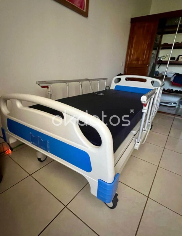 Cama ajustable eléctrica multifuncional, ideal para recuperación en casa, cuidado de adultos mayores o pacientes. Características: - 4 posiciones ajustables - Control eléctrico con mando - Barandas laterales de seguridad - Ruedas con freno - Porta suero incluido - Función Trendelenburg - Soporta hasta 250 kg Medidas: Largo: 213cm Ancho: 102 cm Plataforma de colchón: 200 x 90 cm Colchón Trébol 82 x 200 x 12,7 Cama robusta, NUEVA, segura y muy cómoda