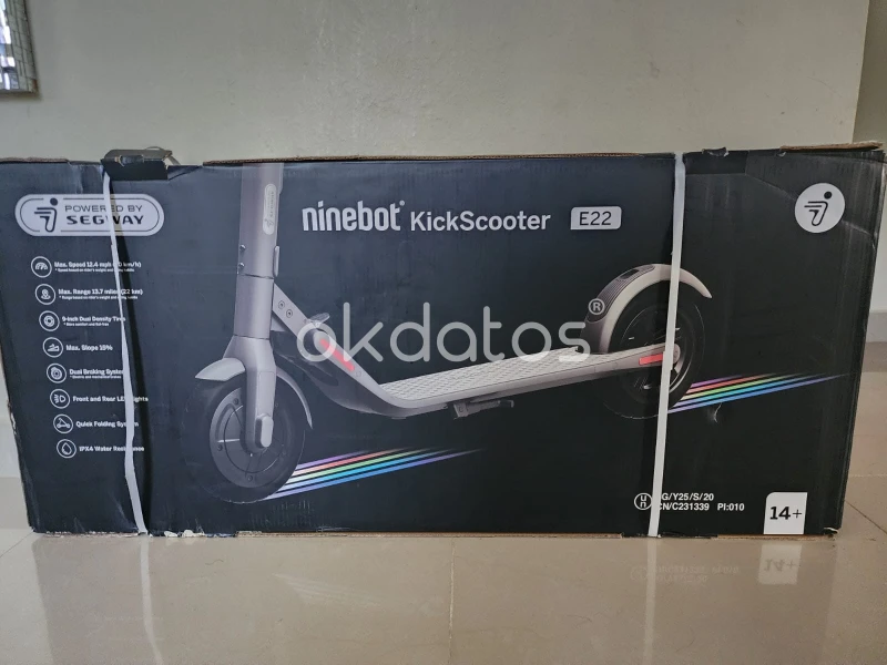 Vive la movilidad Urbana con estilo y comodidad! Vendo Ninebot KickScooter E22, un Scooter eléctrico moderno, potente y seguro, ideal para despalzamientos cortos y urbanos. Diseñado por Segway, combina tecnología avanzada con diseño práctico, plegable y ligero para transportarlo fácilmente. Con un año de garantía en bateria y motor. (Precio Negociable). Solo mensaje vía Whatsapp