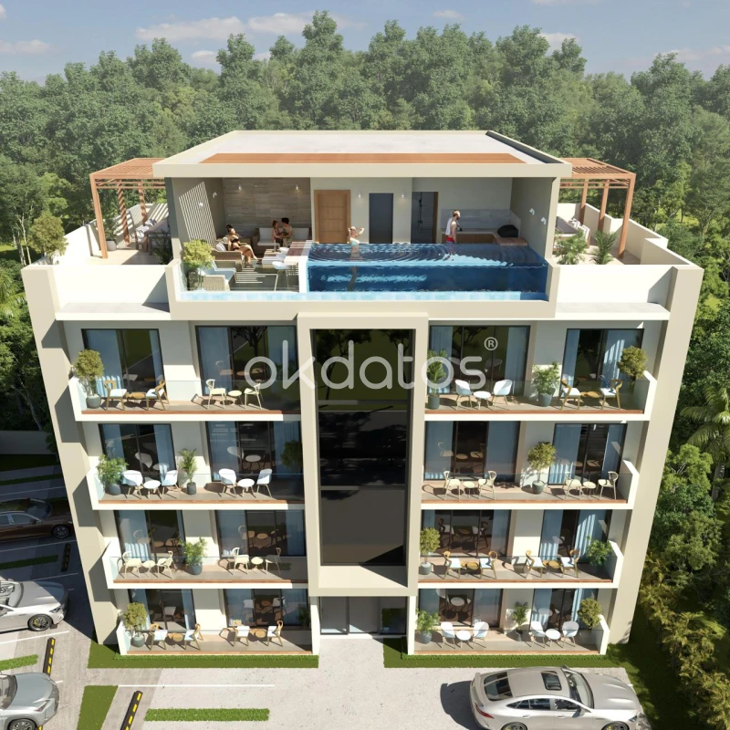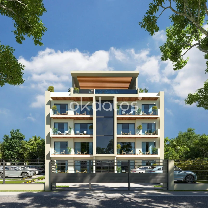 Este es un lujoso y moderno proyecto residencial compuesto por un edificio de cuatro niveles más un nivel superior destinado exclusivamente a áreas sociales y recreativas. Su arquitectura combina elegancia, líneas modernas y una calidad distintiva, convirtiéndose en una opción ideal para quienes buscan exclusividad, confort y una inversión confiable en Cap Cana. Características del proyecto 6 apartamentos de dos habitaciones 2 penthouses 2 parqueos por apartamento Portón eléctrico con control de acceso Lobby Ascensor Área social en el 5to nivel Área Social (5to nivel) Terraza amueblada Bar Piscina infinity con vista transparente hacia el exterior Área de BBQ Baño para visitantes Características de los apartamentos (90.60 m²) Sala-comedor Balcón Cocina con desayunador Área de lavado Habitación principal con baño, vestidor y balcón Habitación secundaria Baño común Clóset de ropa blanca Locker Características del Penthouse 60 m² de terraza en el nivel superior Medio baño Preinstalaciones para jacuzzi y BBQ Plan de pago US$2,000 para reservar 30 días para completar el 10% (firma de contrato) 30% durante la construcción en cómodas cuotas 60% contra entrega Fechas de entrega Junio 2026 Julio 2027