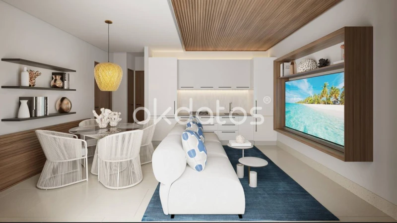 Es un conjunto residencial compuesto por unidades distribuidas entre Townhouses y Apartamentos, dentro de un área total de 8,620 m². El terreno posee un largo de 335 ml y un ancho que varía entre 45 y 75 ml. El proyecto ha sido diseñado para ofrecer bienestar, comodidad y áreas recreativas para todos sus residentes, integrando amplios espacios verdes, piscinas y amenidades exclusivas. Amenidades y Áreas Comunes Varias piscinas ubicadas frente a todos los edificios, tanto de apartamentos como de townhouses. Dos patios cubiertos con mobiliario exterior. Lobby para recibimiento. Gimnasio equipado, cubierto y con estructura ligera en columnas de concreto y techo en madera con tejas tipo canadiense. Duchas y baños externos en el área de piscina, más baño para empleados. Áreas verdes que ocupan aproximadamente 4,500 m². Seguridad 24 horas con control de acceso propio del proyecto. Edificios con ascensor en todos los bloques. Acceso a los servicios de Vista Cana, como: Club de playa Campo de golf nocturno Campo ecuestre Otras amenidades exclusivas Equipamiento del Gimnasio Banco Press Prensa de Piernas Máquina de Dorsales Bicicletas Estáticas Elípticas Cintas de Correr Parqueos 189 parqueos asignados, uno por cada unidad. 15 parqueos para visitas. Parqueos adicionales disponibles para la venta. Tipos de Unidades TIPO 1 Townhouses de 2 habitaciones TIPO 2 Townhouses de 3 habitaciones con rooftop TIPO 3 Edificio de 3 niveles con rooftop Apartamentos de 1, 2 y 3 habitaciones TIPO 4 Edificio de 4 niveles Apartamentos de 1 y 2 habitaciones Fechas de Entrega Etapa I: Marzo 2026 Etapa II: Marzo 2027 Esquema de Pago Reserva: US$2,000 15% para firma de contrato 25% durante construcción 60% contra entrega