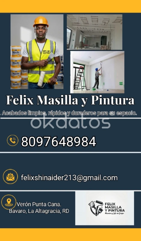 Masilla fina, pintura profesional y estuco de alta calidad. Acabados limpios, rápidos y duraderos para su espacio. 809 764-8984 felixshinaider213@gmail.com Verón Punta cana la altagracia