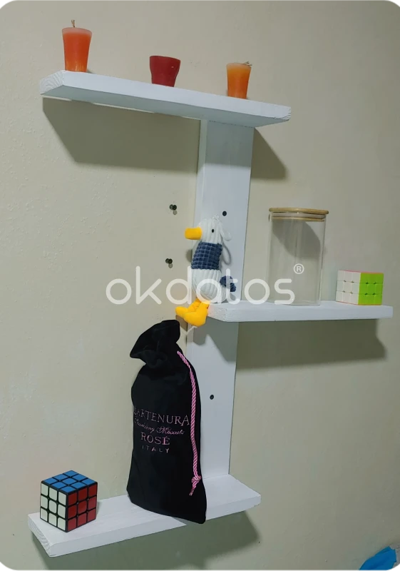 Repisa decorativa hecha a mano, ideal para plantas, libros y fotos. Pintada en blanco mate con acabado suave. 2 Tornillos y 2 Tarugos incluidos, 18 pulgadas de altura x 14 pulgadas cada tabla en horizontal, 3/4 pulgadas de grosor de la madera, dejo mi numero de whatsapp en la primera foto.