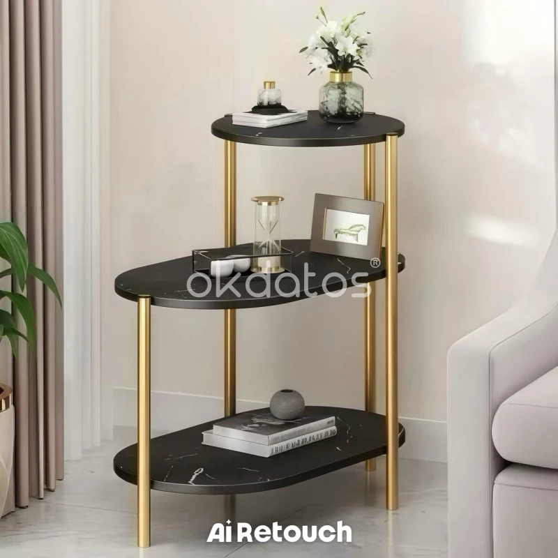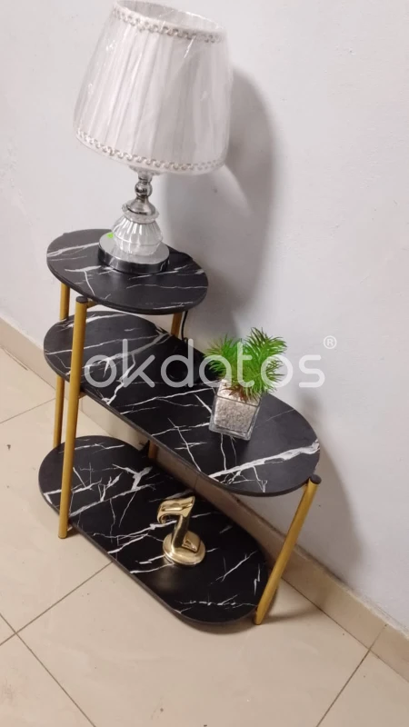 MESA DE CENTEO O AUXILIAR DECORATIVA MEDIDA: 65X30X62CM COLOR: NEGRA CON DORADO
