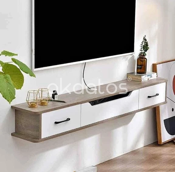 MUEBLE DE TV FLOTANTE MEDIDA: 130X24X30CM COLOR: MARRÓN CLARO CON BLANCO