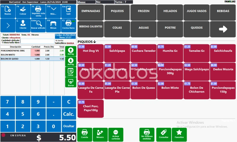 Software para restaurantes y discotecas (cafeterías, heladerias, pizzeria, locales comida, etc)