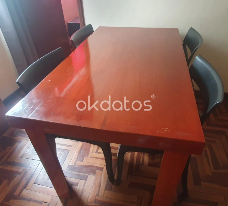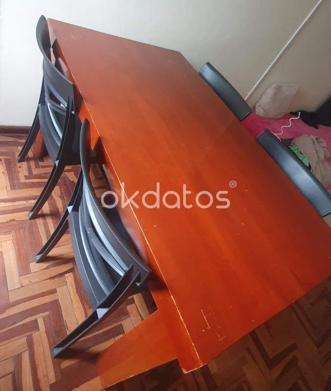 Vendo mesa de madera con 4 sillas plásticas almacén Pica. Detalle: la mesa está rayada en algunas partes. Me encuentro en el sur de Quito.
