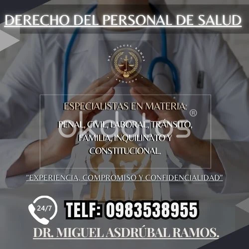 Usted cuida de los pacientes, yo cuido de su integridad legal. En el complejo mundo de la medicina y la salud, los profesionales enfrentan riesgos jurídicos constantes. Brindo asesoría experta y defensa técnica especializada para médicos, enfermeros y personal administrativo, garantizando que su carrera y su prestigio estén siempre protegidos. Nuestros servicios especializados incluyen: ⚕️ Defensa en Responsabilidad Médica: Representación integral ante demandas por presunta mala práctica profesional, tanto en el ámbito civil como penal (COIP). 📋 Sumarios Administrativos: Defensa técnica en procesos disciplinarios ante el MSP, IESS o instituciones privadas, protegiendo su estabilidad laboral y su hoja de vida. 🔍 Procesos ante ACESS y MSP: Asesoría y representación en inspecciones, sanciones y procesos administrativos ante la Agencia de Aseguramiento de la Calidad de los Servicios de Salud. 💼 Derechos Laborales de Salud: Reclamaciones por jornadas extendidas, guardias no remuneradas, despidos intempestivos y vulneración de derechos en el sector público (LOSEP) y privado. ✍️ Contratación Médica y Bioética: Redacción y revisión de contratos de servicios profesionales, consentimientos informados y asesoría en dilemas ético-legales. 🛡️ Protección del Prestigio Profesional: Acciones legales contra difamaciones o ataques a la honra derivados del ejercicio de su profesión. ¡No arriesgue su carrera ni su libertad, cuente con un experto! 🏥✨ 📲 Contáctame hoy mismo: +593 98 353 8955 📍 Visítame en mi despacho: Bolívar y Maldonado. Dr. Miguel Ramos Justicia y respaldo legal para quienes salvan vidas. ⚖️🩺