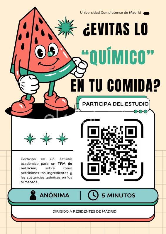 Buenas tardes 馃槉 Soy estudiante de la Universidad Complutense de Madrid y estoy realizando mi Trabajo de Fin de M谩ster sobre c贸mo percibimos los ingredientes en los alimentos. Si vives en Madrid y tienes 3-5 minutos, me ayudar铆as much铆simo respondiendo esta encuesta (es an贸nima): 馃憠 https://docs.google.com/forms/d/e/1FAIpQLSc_XZmg-Bw8Sn0qQDLxtvfvxceChmY11lcu7fSlQqdPkY1Rpw/viewform?usp=header Muchas gracias por apoyar la investigaci贸n.