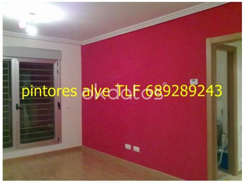 Pintores económicos y profesionales Alye "Decoración", quitamos gotéele y alisamos con buenos acabados. Gran variedad de colores a elegir, pintamos pisos por 350 euros. Todo tipo de pintura: temple, pintura plástica, esmalte graso, esmalte sintético, pintura al cemento, pintura a la cal, lacado, pinturas decorativas, gotéele, lisos, barnices, tierras florentinas, pintura vinílica, pintura plástica satinada, estuco veneciano, técnica del esponjado, pintura efecto óxido, rodillos decorativos, veladuras... Pintamos con maquina airless y lijamos con lijadora jirafa Flex para conseguir mejor acabado limpieza y seriedad, llámenos y cambiaremos su hogar. (Área de trabajo) Madrid y Toledo. Madrid: Leganés, Móstoles, Alcorcón,Villaviciosa de Odón, Boadilla del Monte, Majadaonda, Las Rozas, Villalba, Becerril de la sierra, Morar zarzal, Manzanares del Real, Soto del Real, Cercera, Getafe, Pinto, Parla, Fuenlabrada, Humanes, Torrejón de la Calzada, Moraleja de en medio, Torrejón de Velasco, Griñón, Cubas de la Sagra, Arroyo Molinos, Casarubuelos, Alcalá de Henares, Alcorcón, Aranjuez, Patones, Buitrago de Lozoya, Arganda del Rey, Aldea del Fresno, La Hiruela, Chinchón, Algete, Navalcarnero, Anchuelo, Torrejón de Ardoz, Rascafría, Aranjuez, Valdemoro, Valdemorillo, Belmonte del Tajo, Ciempozuelos, Colmenar de Oreja, Estremera, Fuentidueña del Tajo, San Martin de la Vega, Titulcia, Villaconejos, Buitrago de Lozoya, Torrelodones, Galapagar, San Lorenzo del Escorial… Toledo: Illescas, Yeles, Yuncos, Seseña, Esquivias, Borox, Magan, Recas, Olias del Rey, Carranque, El Viso de San Juan, Yepes, Yunclillos, Numancia de la Sagra, Cabañas de la Sagra, Cosuegra, Talavera de la Reina, Ocaña, Los Navalucillos, Arcicóllar, Orgaz, Maqueda, Camarenilla, Ugena, Cedillo del Condado, Chozas de Canales, Consuegra, El Casar de Escalona, Fuensalida, Las Ventas de Retamosa, Mejorada, Ontígola, Pantoja, Santa Cruz de Retamar, Santa Olalla, Sonseca… Somos un equipo de pintores con una gran variedad de estilos de alta decoración no dude en llamarnos y pedir presupuesto sin compromiso alguno estaremos a su disposición y le pasaremos presupuesto lo antes posible. (Tanto el presupuesto como la visita a su vivienda son totalmente gratis y sin compromiso alguno) http://pintoreseconomicosalye.es.tl/